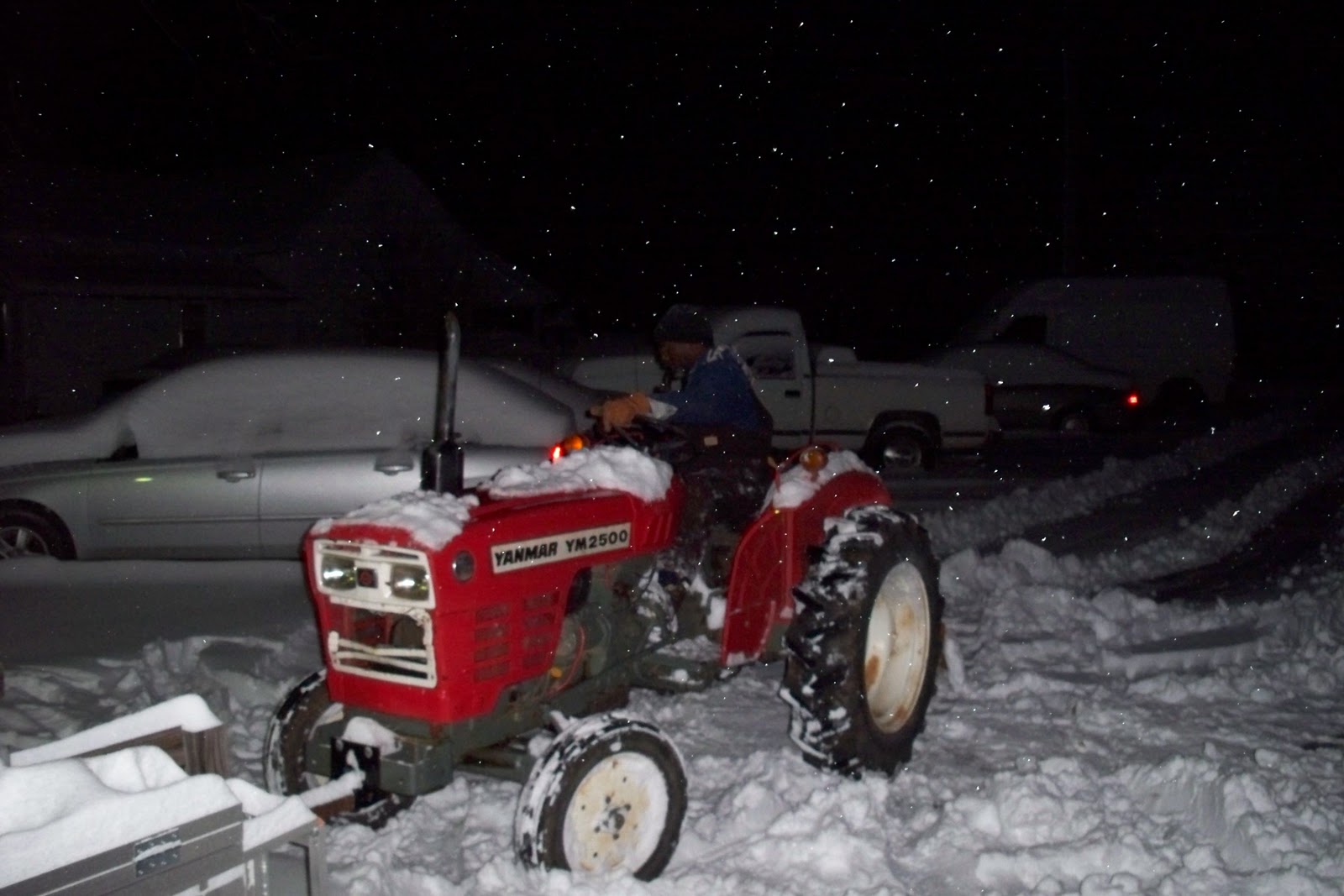 So I sent Satch out to shovel the walk... well, I heard engine noises outside and thought, "Whoa! Is the county clearing the roads??? That would be a hoot!" Well, I looked outside and Satch had the Tractor with the blade and was 'shoveling' the driveway! (I think he went out there to play!) Here is a pic...